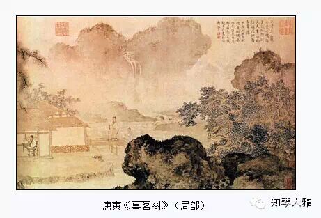 明代還有另一名著名的畫家文徵明,他也畫了不少茶畫,如《惠山茶會記》、《品茶圖》等,畫面都是在高山叢林之間,突出一個「隱」字,反映出了當時茶文化契合自然的特點。